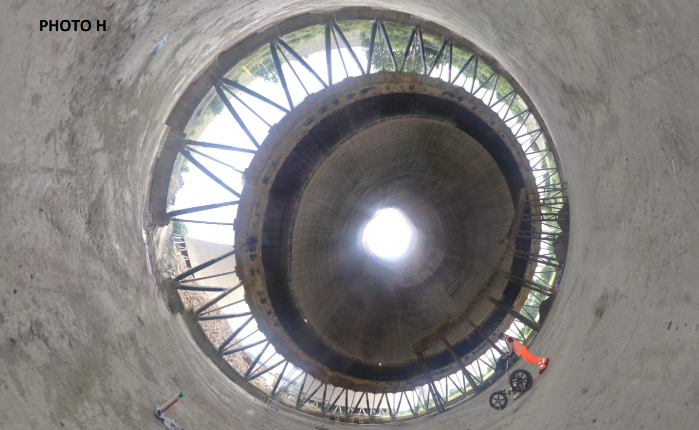 FIRST PLACE: Matt Stringfellow (RSK), GPR survey at Didcot Power Station Cooling Tower (fish eye lens) 1 day before demolition
